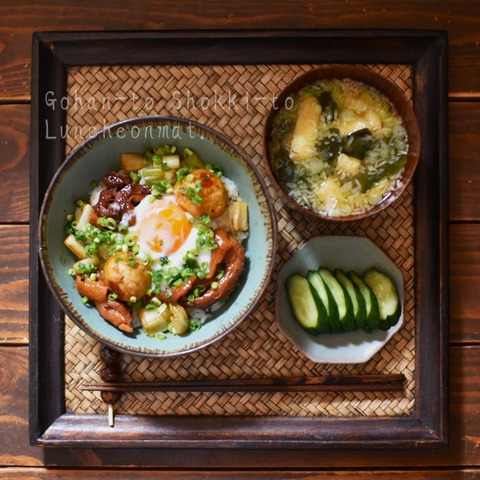 1日休みで朝からゆっくり、今日のランチ~本日温玉絶好調。日本語です。つくね入り焼き鳥丼。以前お取り寄せの常温保存できる鶏の炭火焼きを使った焼···