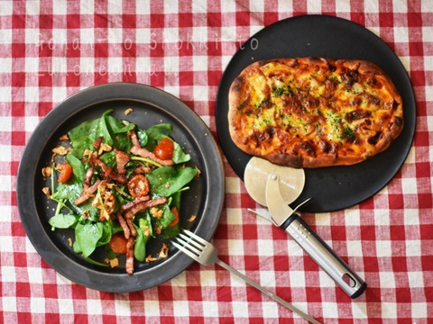 ちょうど昼くらいに外出先から帰宅、用事を少々済ませてから今日のランチ~春菊はいったんお休み。ほうれん草とベーコンのサラダ。数十年前の若かりし···